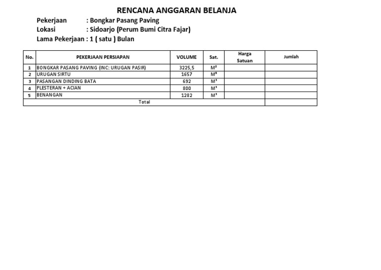 Rab Pasang Paving - Analisa Harga Satuan Pekerjaan Paving Block Rumah Material - 30 (tiga puluh hari kalender). Tidak dipungkiri bahwa menggunakan paving block menjadi lebih hemat dibanding dengan menggunakan aspal. Rencana anggaran biaya rab jalan paving blok pondok. 93,500.00 /oh 2 kepala tukang rp. Rencana anggaran biaya (rab) bangunan tahun 2020 file sofcopy. Itulah yang disebut dengan kanstin, dimana merupakan salah satu jenis beton pracetak yang biasa digunakan sebagai pembatas pada proses konstruksi jalan.